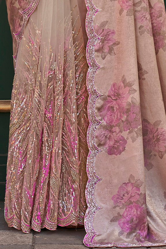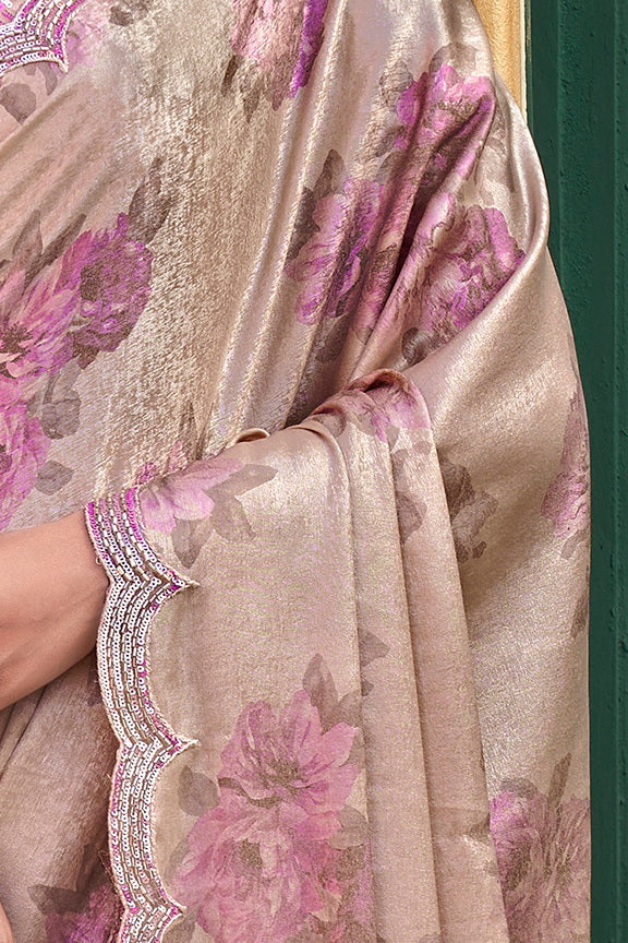 Chiku Gucci Velvet PureBeads Hand Work Designer Saree