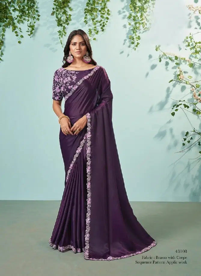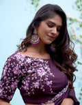 Dark Purple Embroidered Crepe Silk Saree