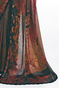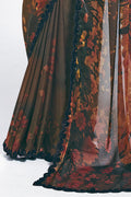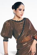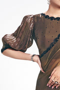 Dull Gold Two Tone Satin Silk Bead Embroidery Work Saree
