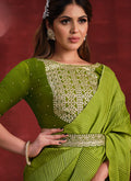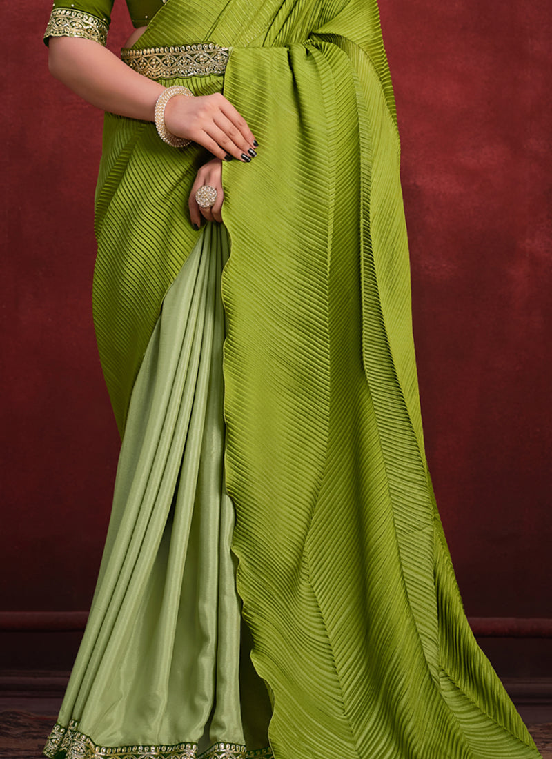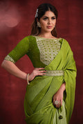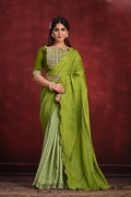 Green Silk Georgette Texture Pallu Saree with Stitched Blouse
