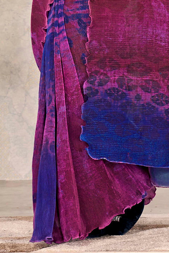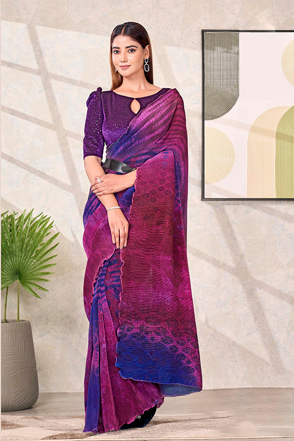 Purple Pure Satin Silk Squence Embroidery Ready to Wear Saree