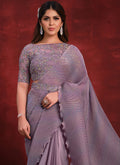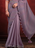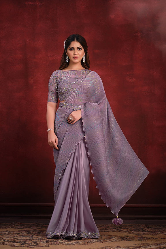 Purple Satin Silk Texture Pallu Saree with Stitched Blouse