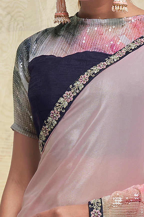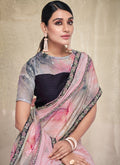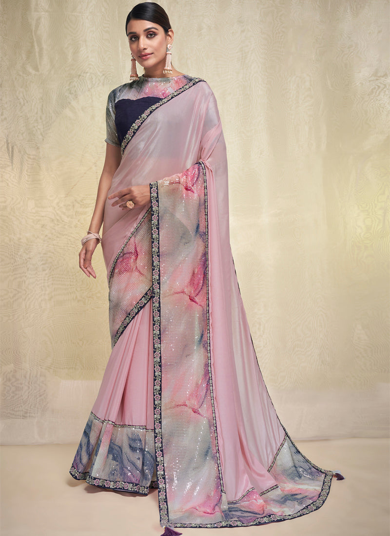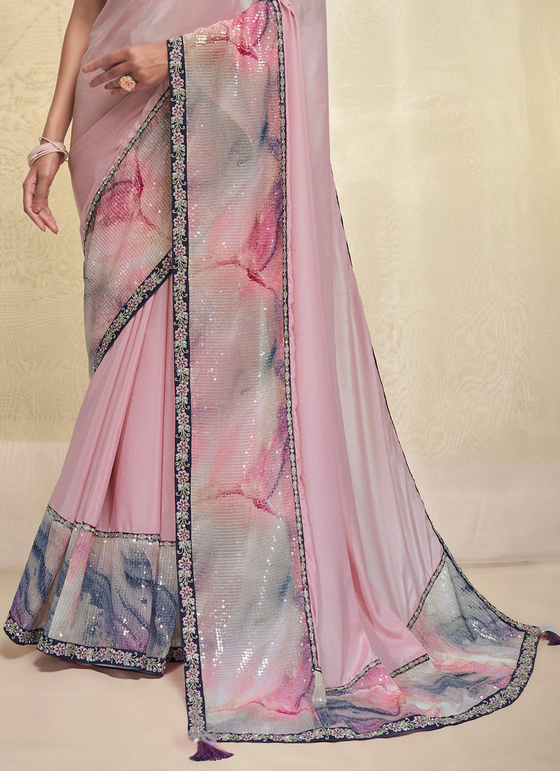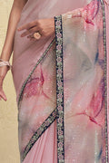 Pink Crepe Georgette Embroidery Work Saree