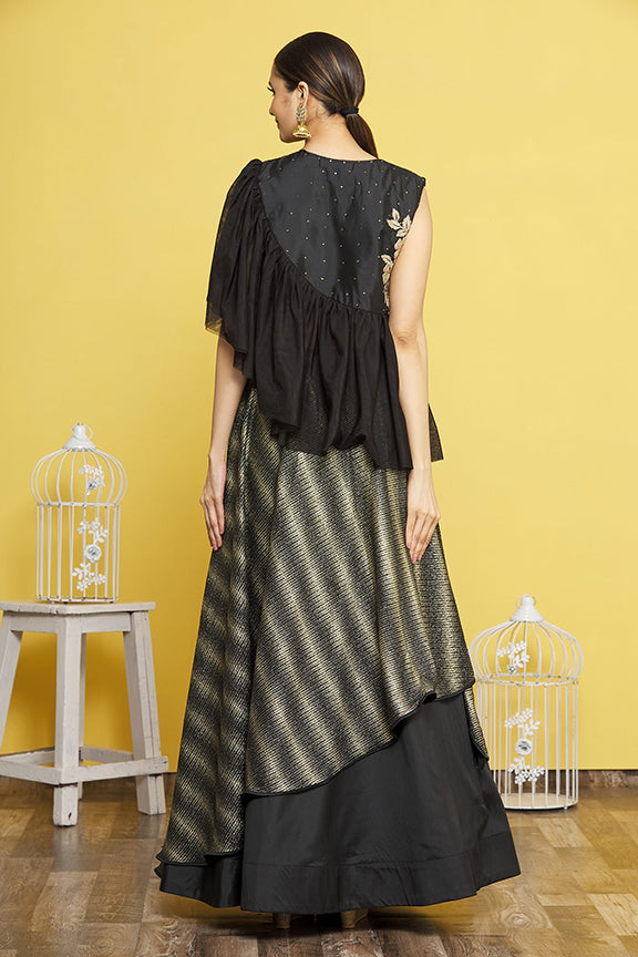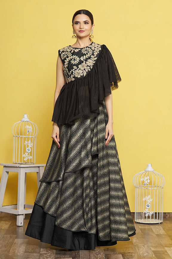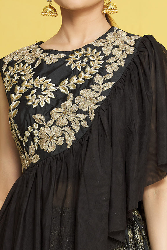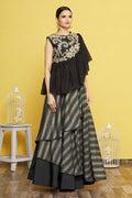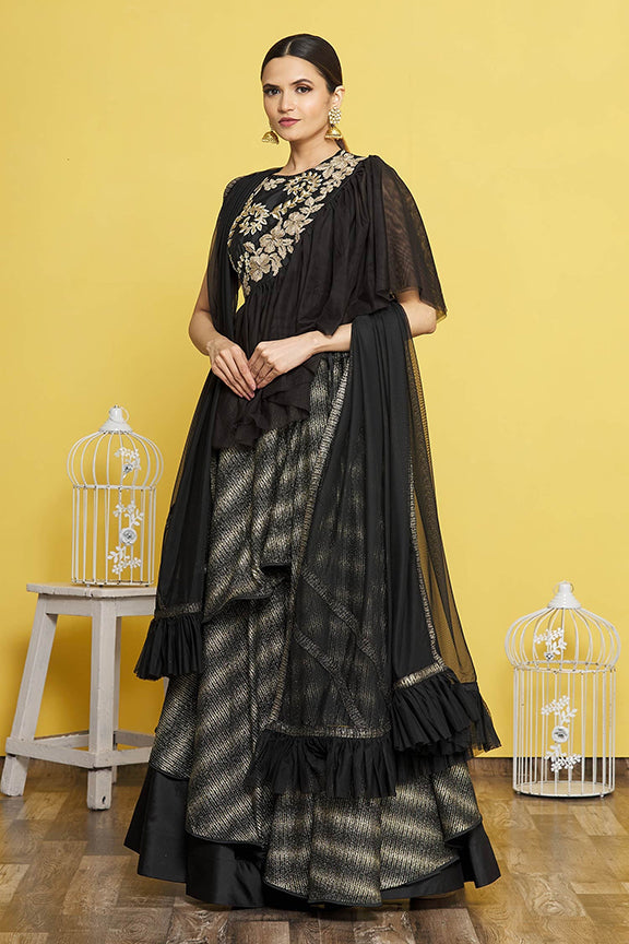 Black Taffeta Silk Embroidered Stitched Lehenga Choli with Dupatta