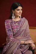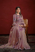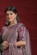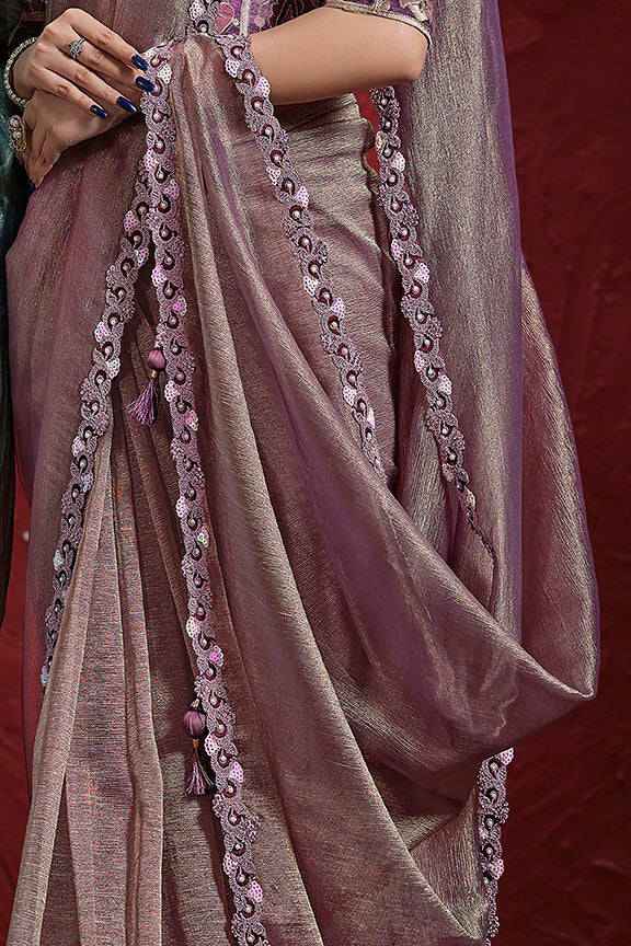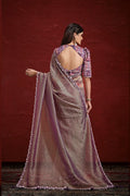Purple Pure Banarasi Jari Crinkle Sequence with Handwork Saree with Stitched Blouse