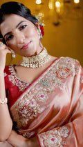 Orange Pure Twill Tissue Pure Khatli work Designer Saree With Blouse.