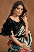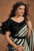 White and Black Hand Work Satin Silk Ready to Wear Saree
