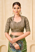 Green Signora Zari Check Silk Floral Digital Print with Foil Print Saree