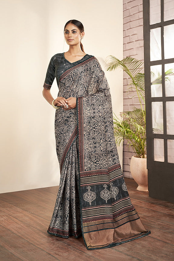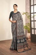 Grey Gajji Silk Printed Saree with Unstitched Blouse