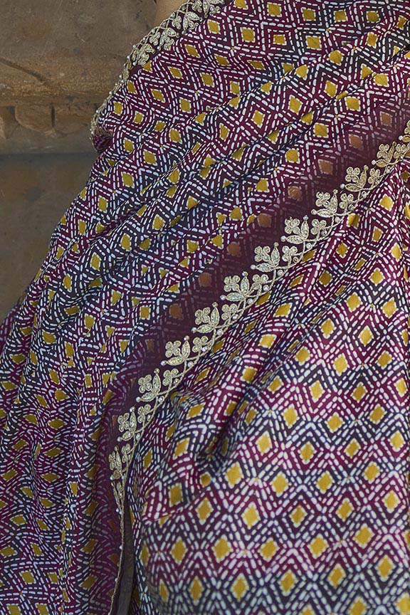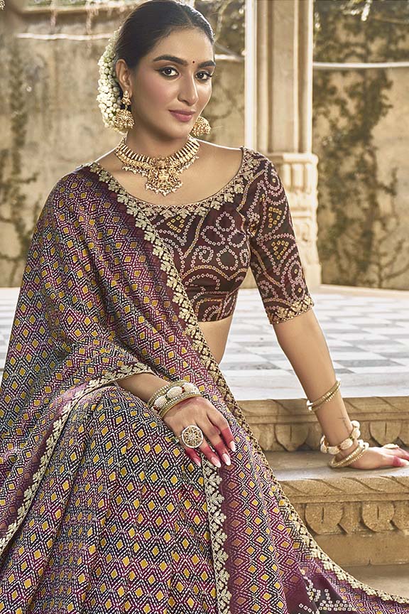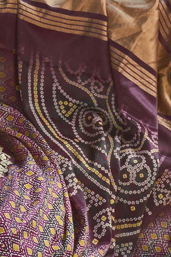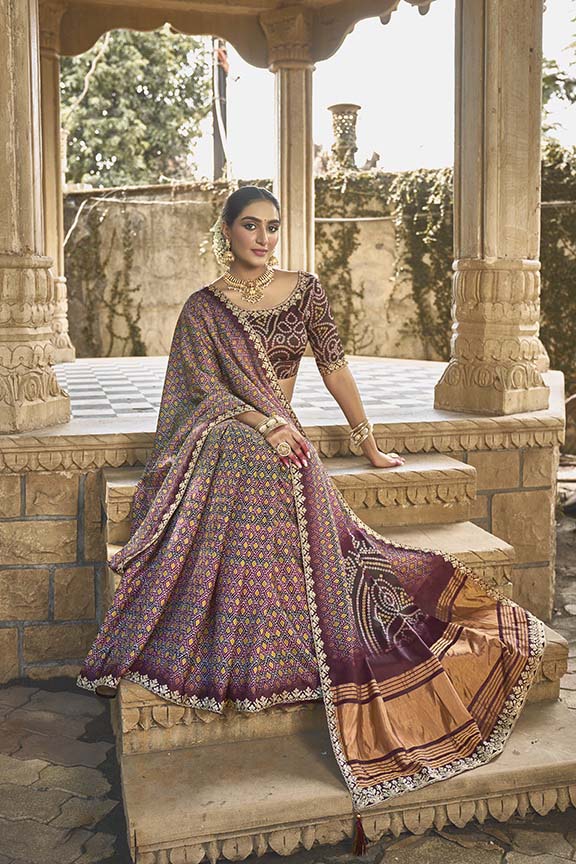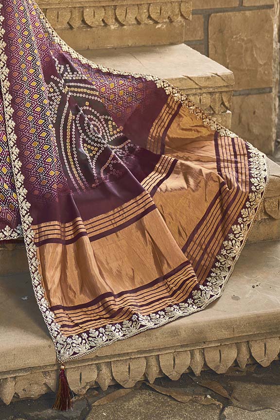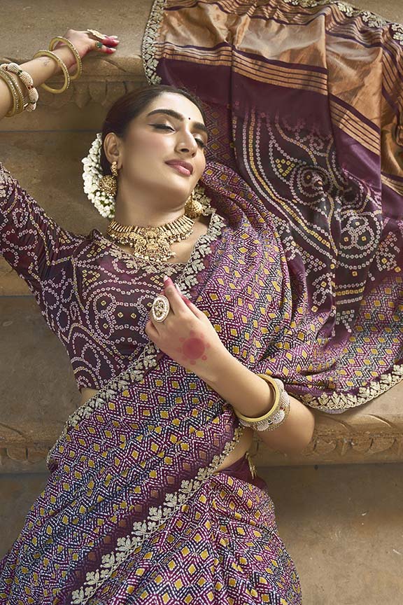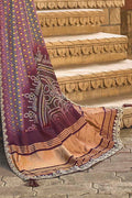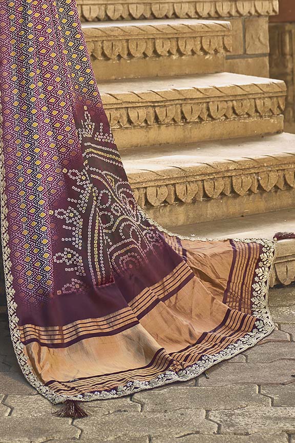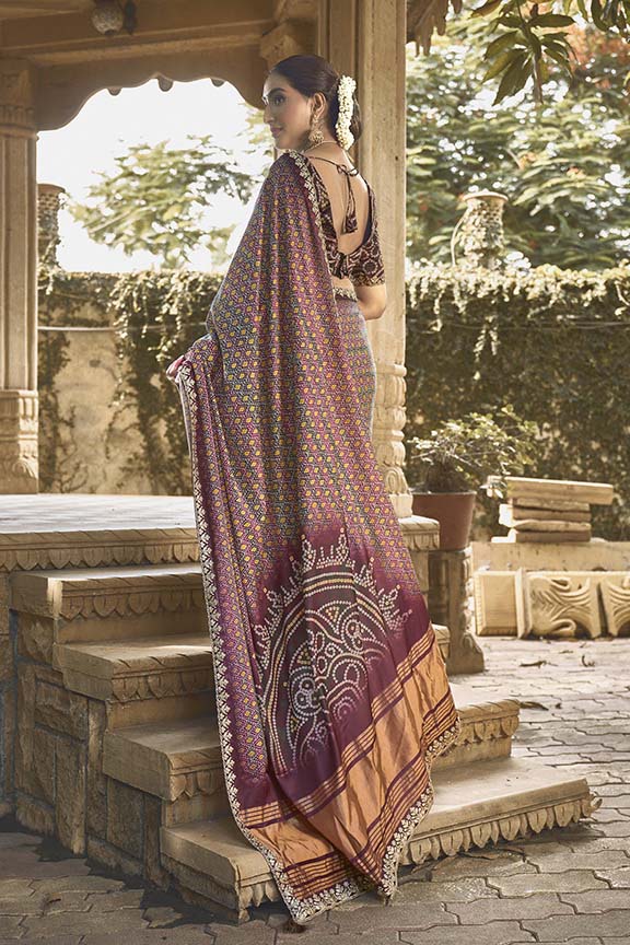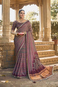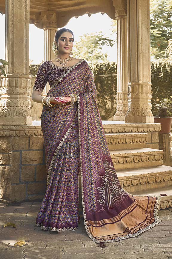 Purple Gajji Silk Handwork Saree with Unstitched Blouse