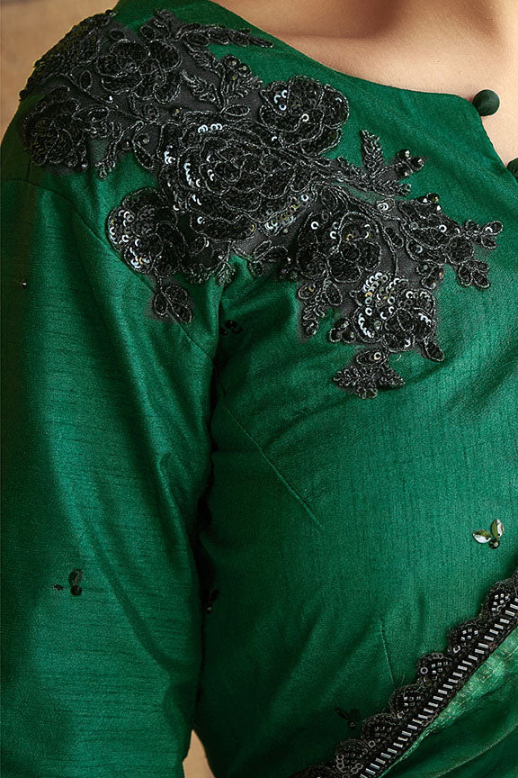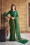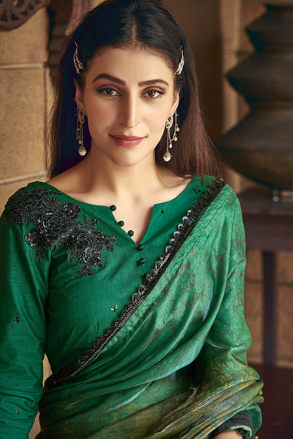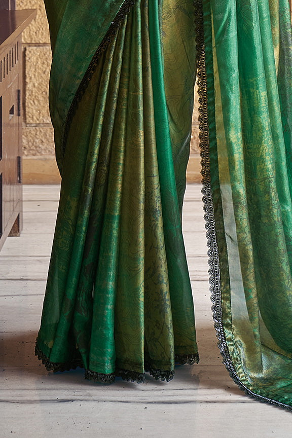 Green Sparking Satin Silk Printed Saree with Unstitched Blouse (Copy)