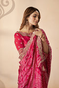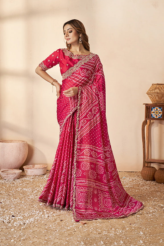 Red Gajji Silk Bandhani Saree with Unstitched Blouse