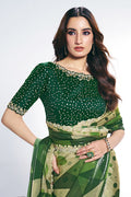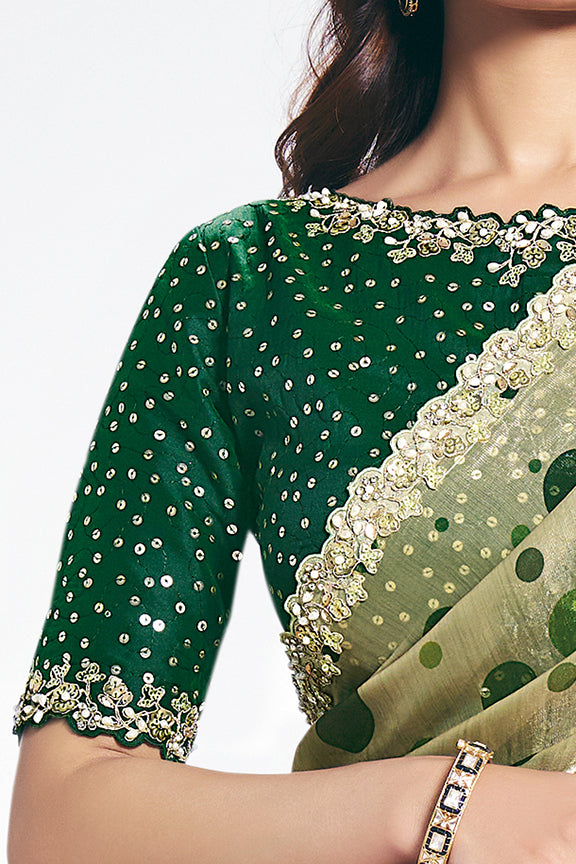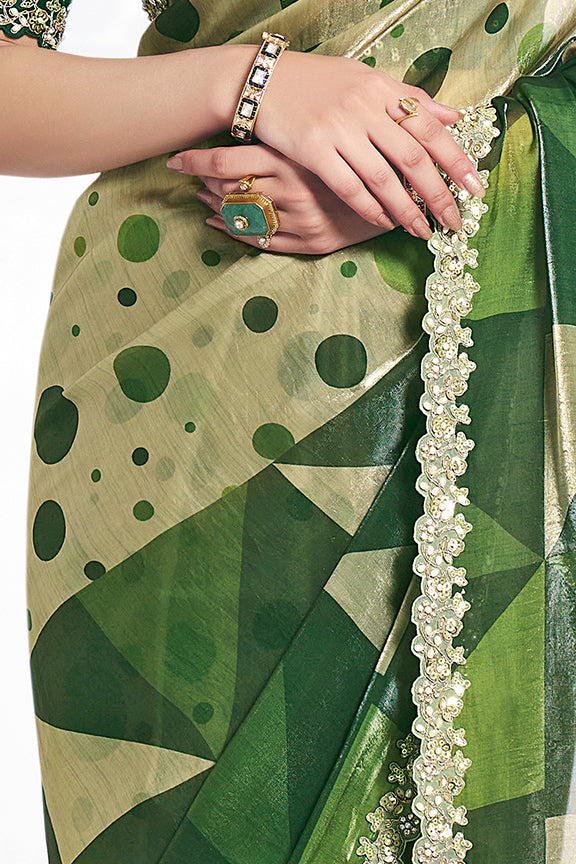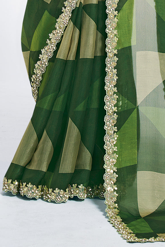 Green Two Tone Satin Silk Stone Handwork Saree