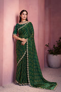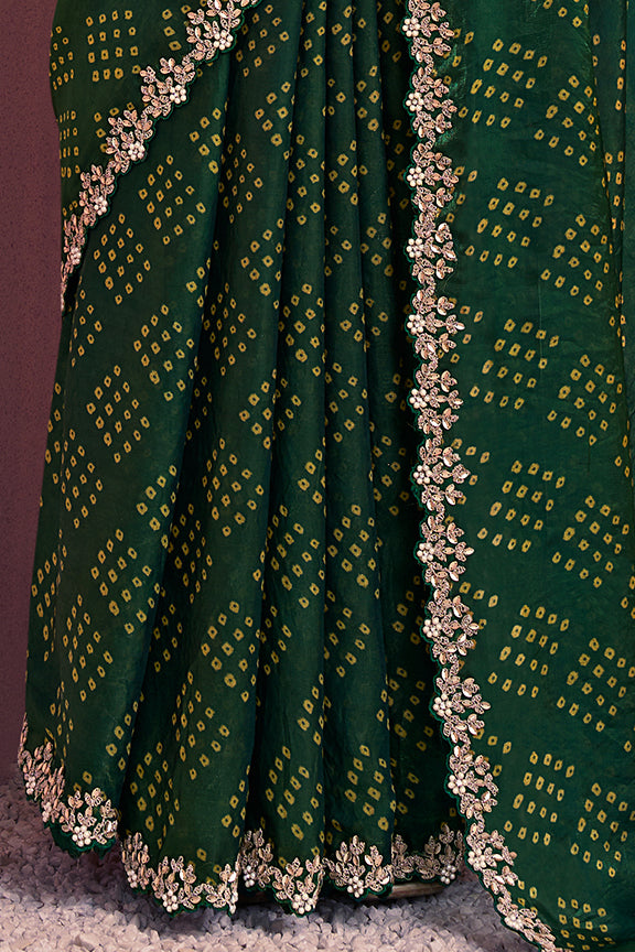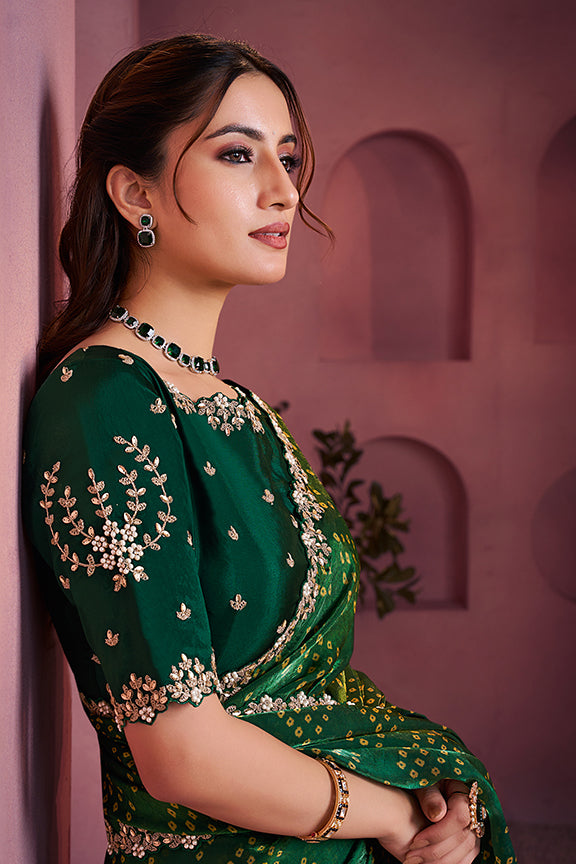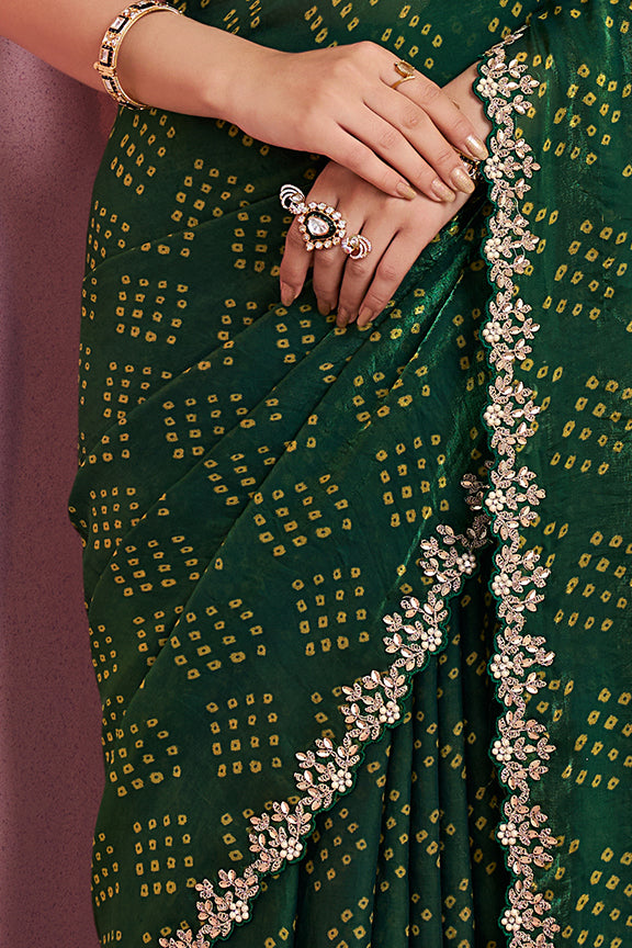 Green Two Tone Satin Silk Stone Handwork Saree
