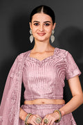 Pink Net Embroidered Semi Stitched Lehenga Choli