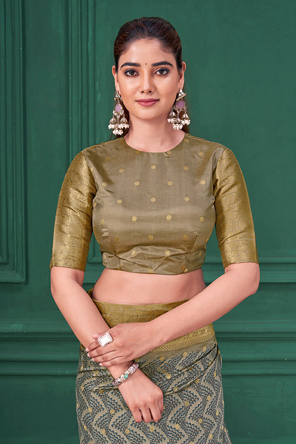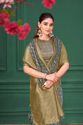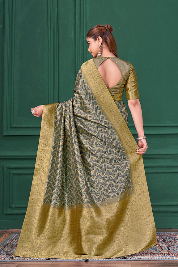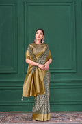 Grey Tussar Silk Jacquard Abstract Digital Print Saree