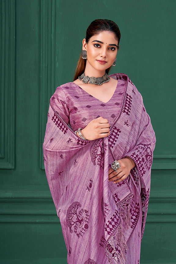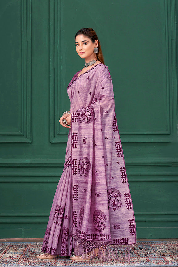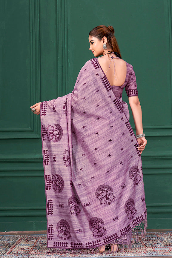 Lavender Tussah Warli Silk Warli Print Saree