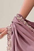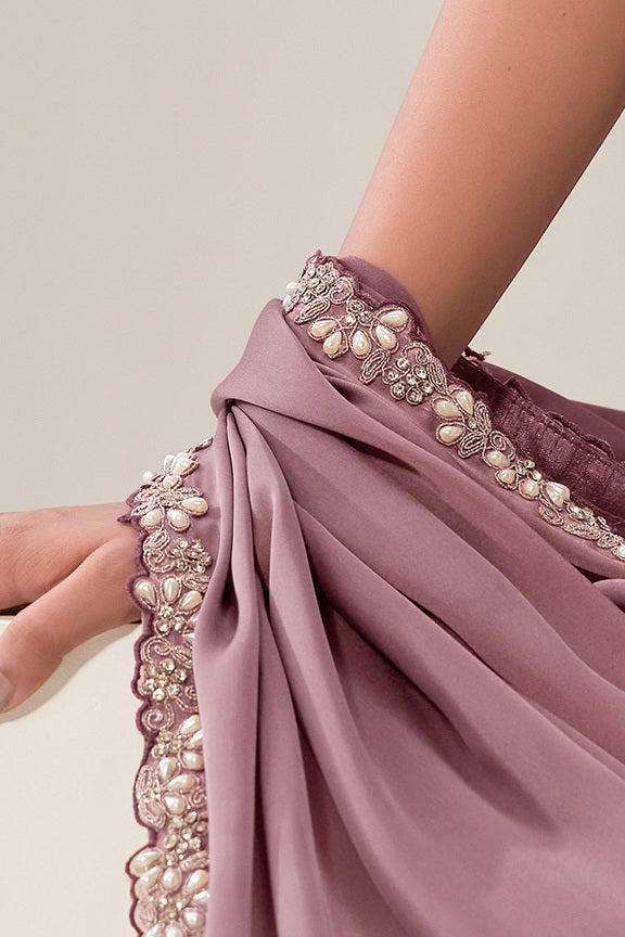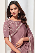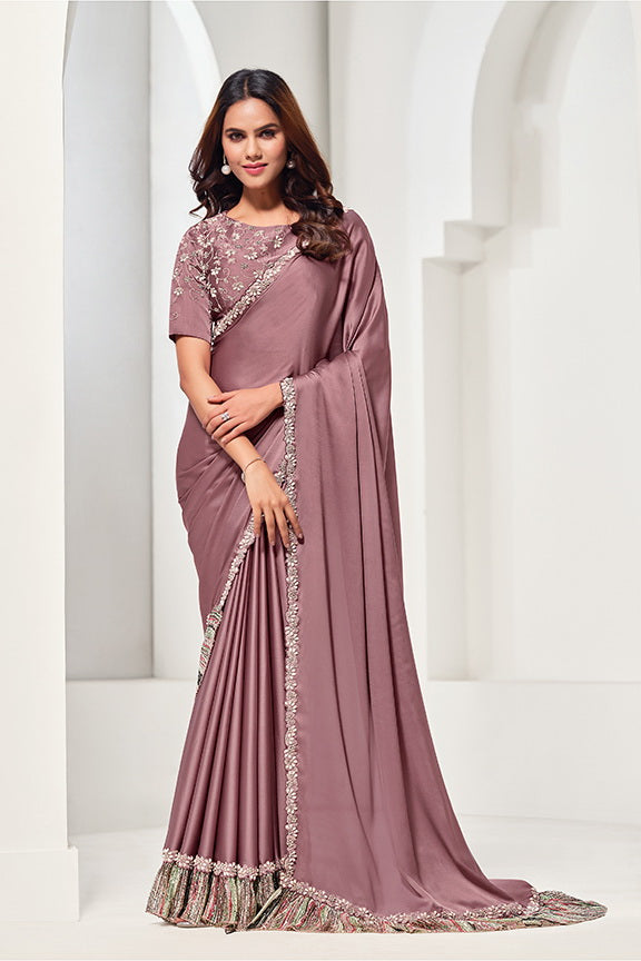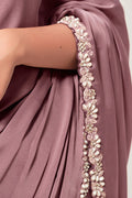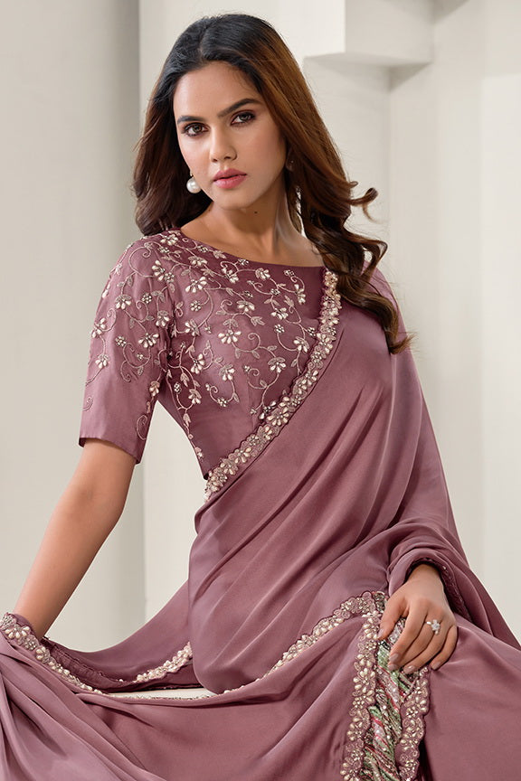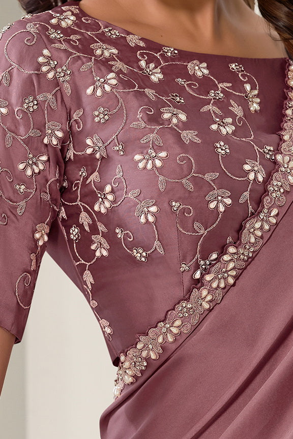 Mauve Crepe Satin Silk Sequence & Handwork Saree with Unstitched Blouse