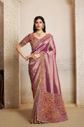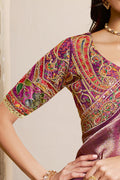 Purple Kanjivaram Jaquard Silk Handwork Designer Saree