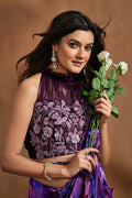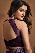 Violet Hand Work Satin Silk Ready to Wear Saree