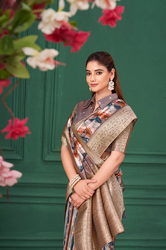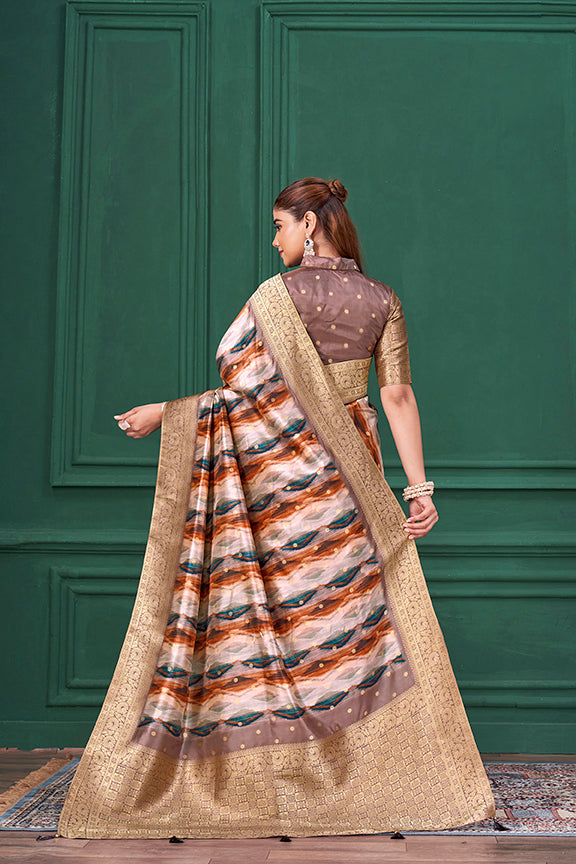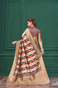 Lilac Purple Tussar Silk Jacquard Abstract Digital Print Saree