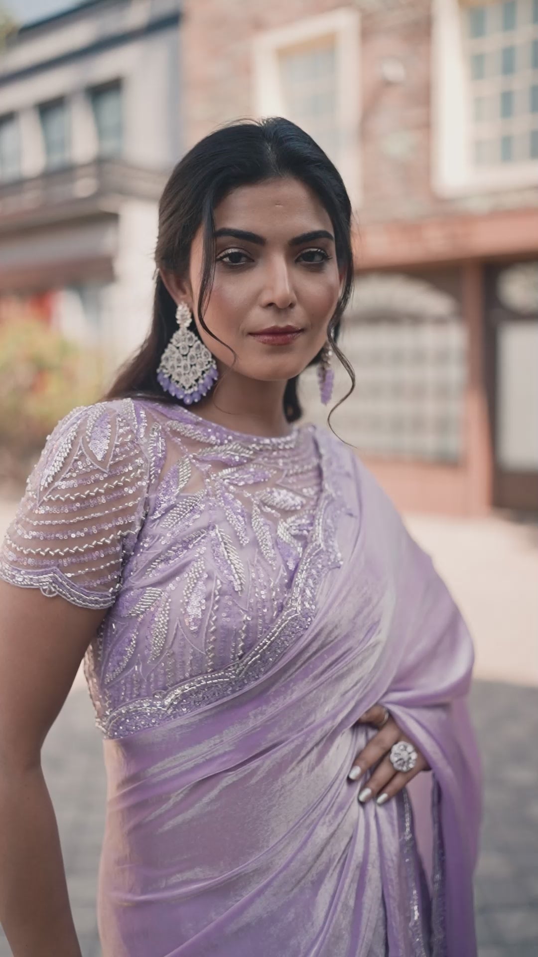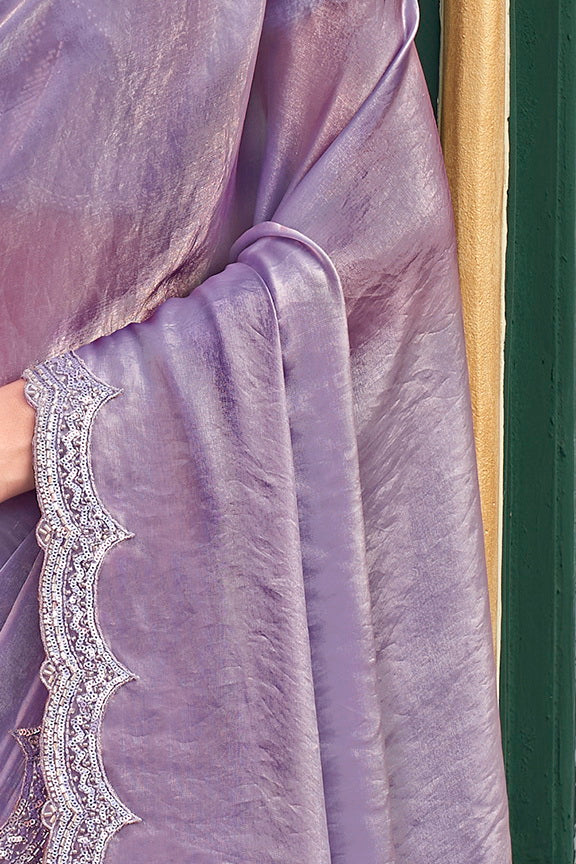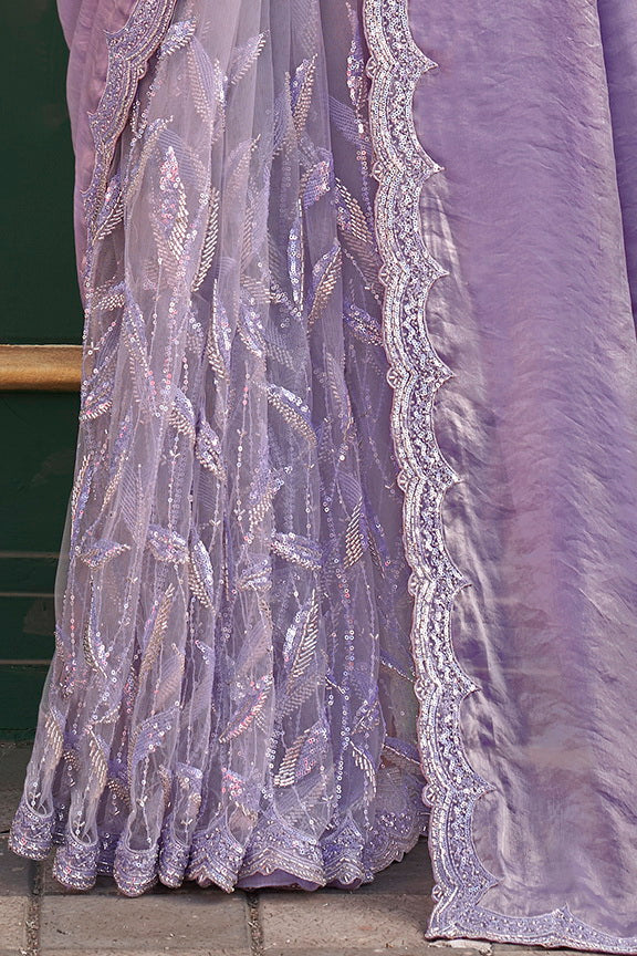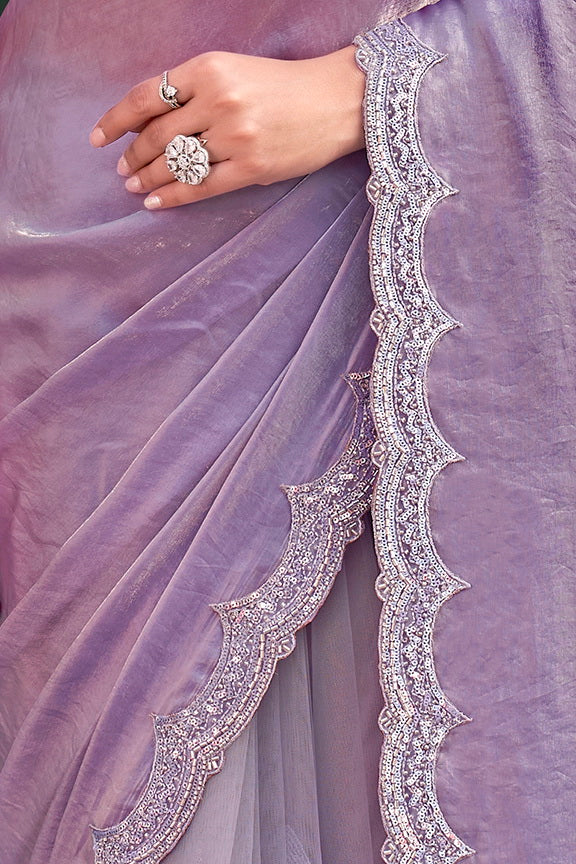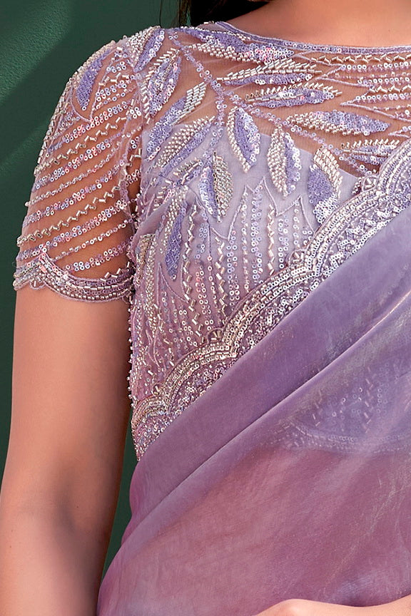 Lavender Versace Illusion Pure Beads Hand Work Designer Saree