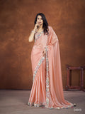 Peach Crepe Satin Silk Embroidered Saree with stitched Blouse