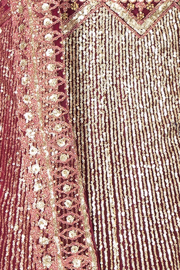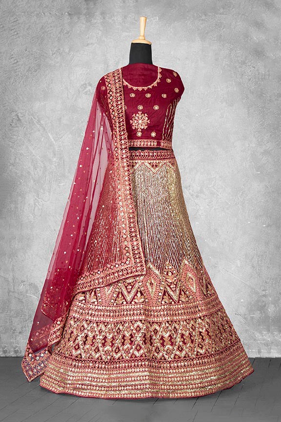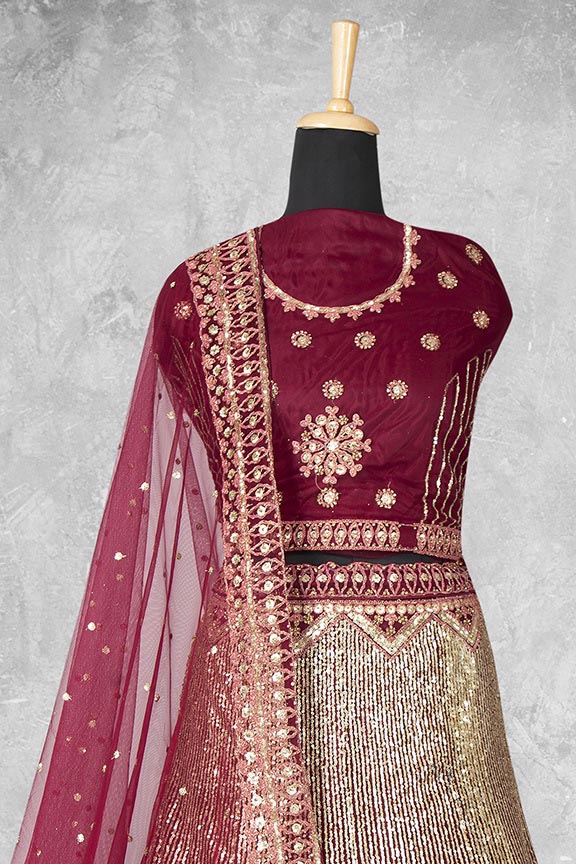 Maroon Net Embroidered Semi Stitched Lehenga Choli with Dupatta