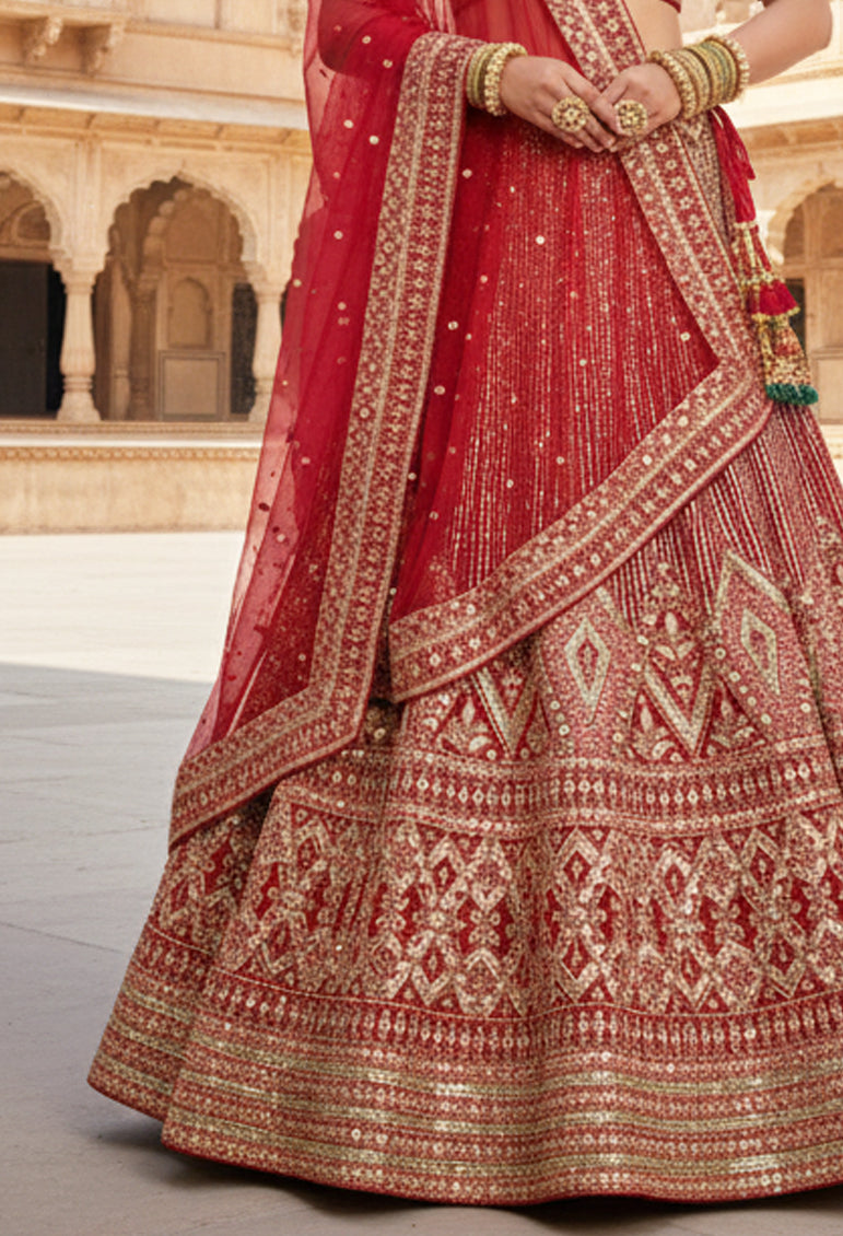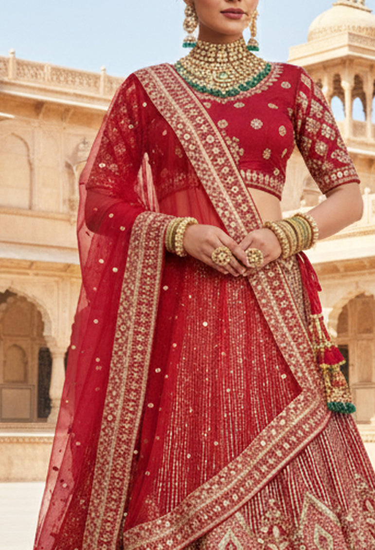 Maroon Net Embroidery Lehenga Choli