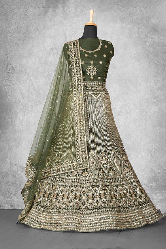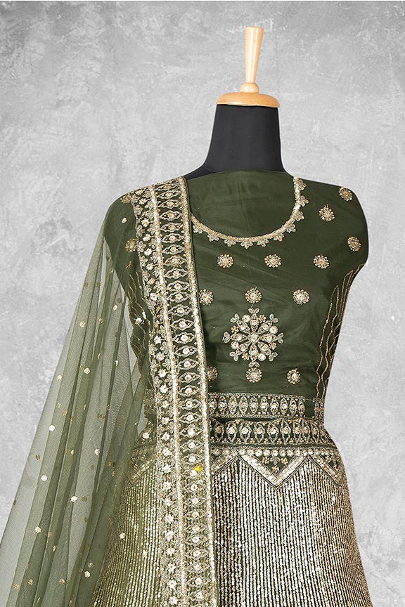 Dark Green Net Embroidered Semi Stitched Lehenga Choli with Dupatta