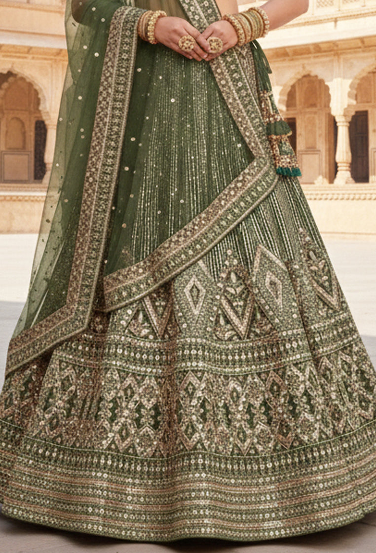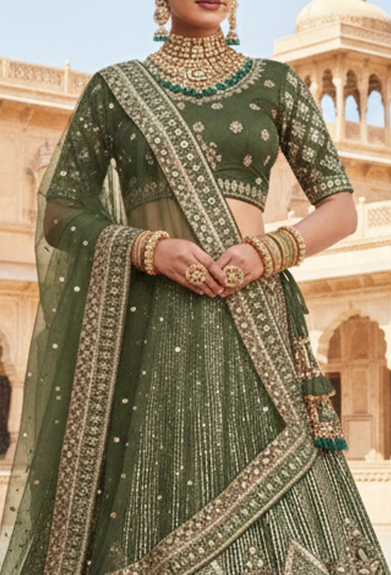 Dark Green Net Embroidery Lehenga Choli