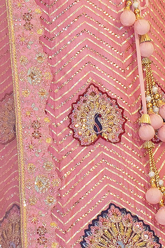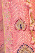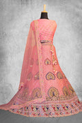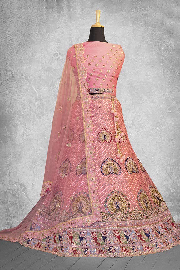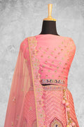 Peach Organza Silk Embroidered Semi Stitched Lehenga Choli with Dupatta