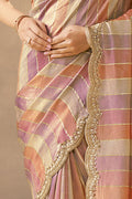 Pink Banarasi Tissue Beads Embellishment Designer Saree
