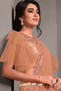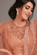 Orange Net Embroidered Saree with Stitched Blouse