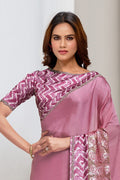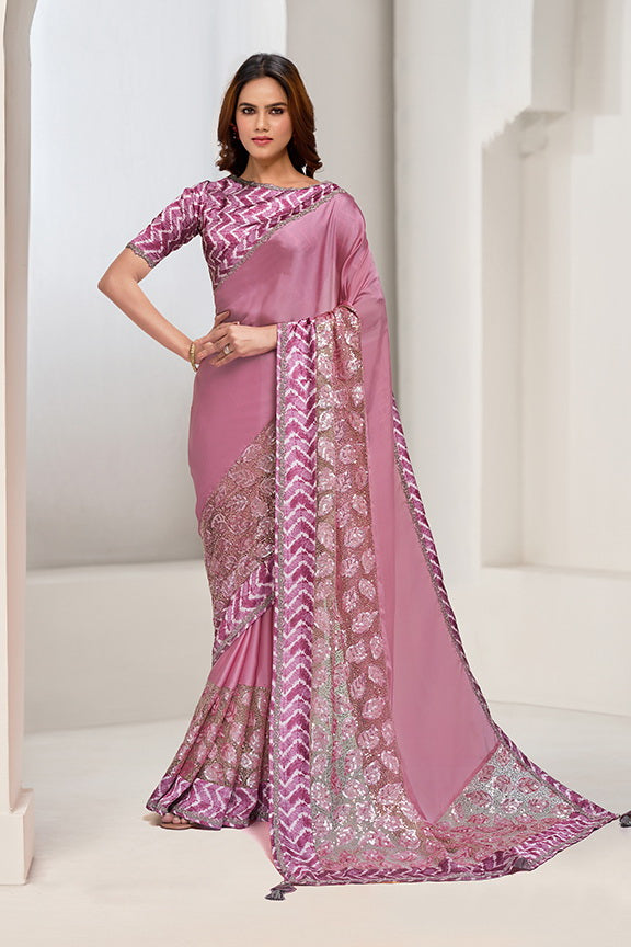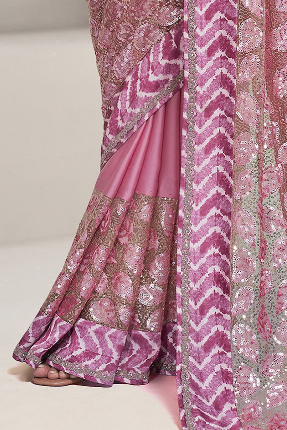 Pink Crepe Georgette Applic Work with Sequence Saree with Unstitched Blouse