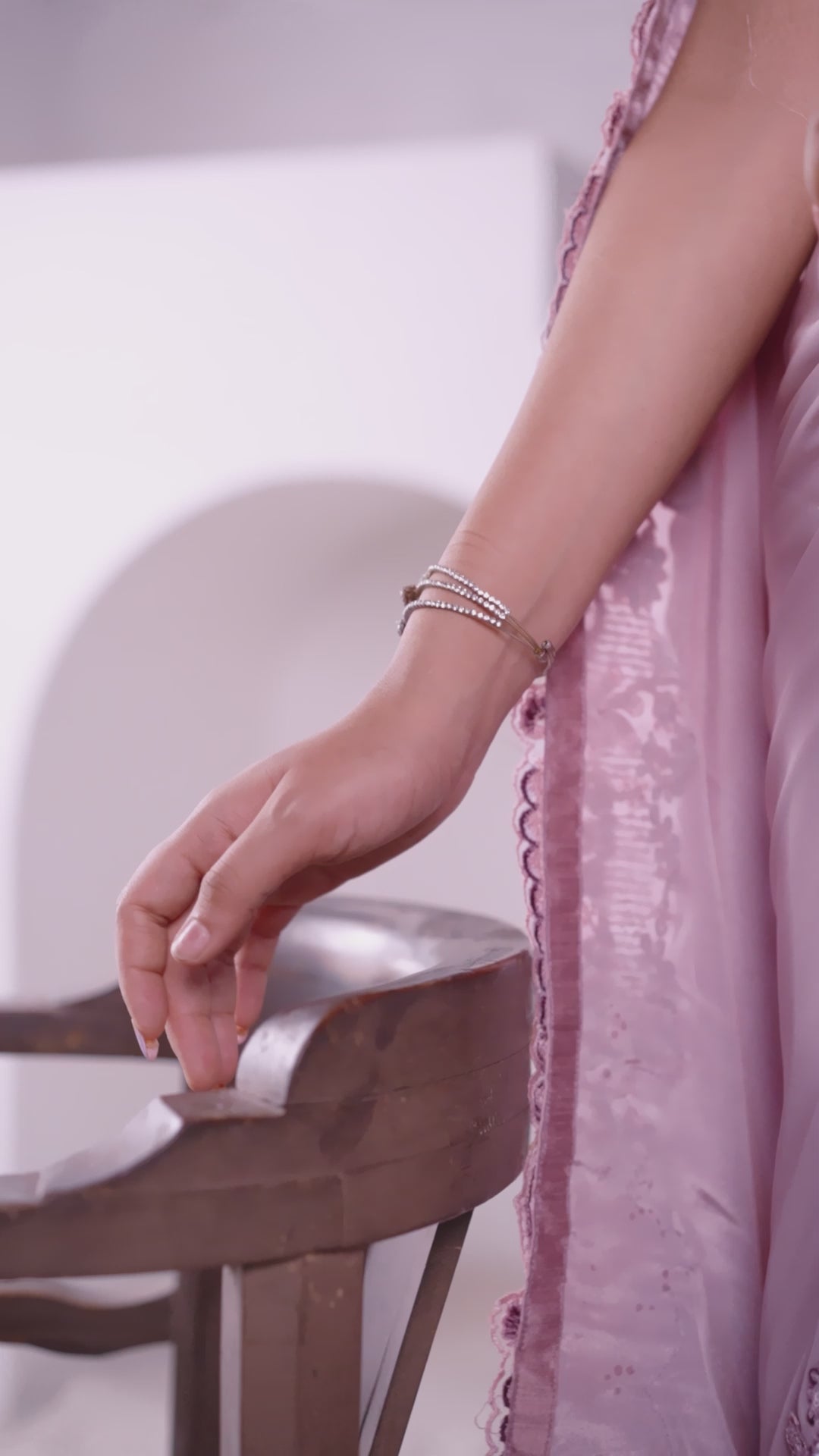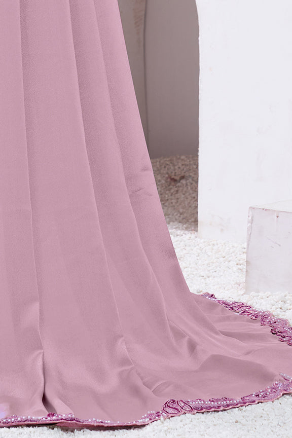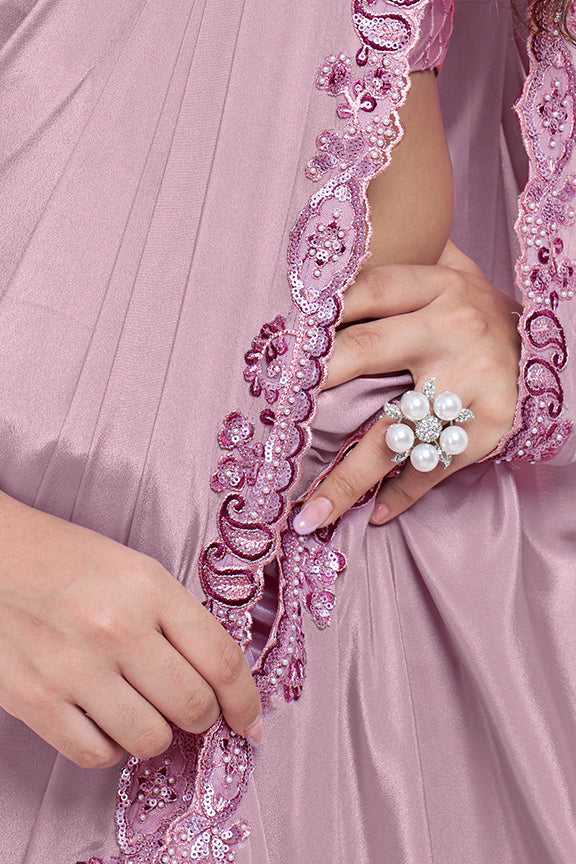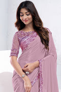 Mauve Pure Crepe Silk Sequence with hand work Saree