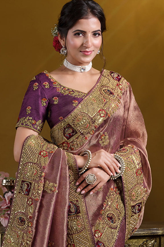 Wine Pure Georgette Pure Khatli work Designer Saree With Blouse.