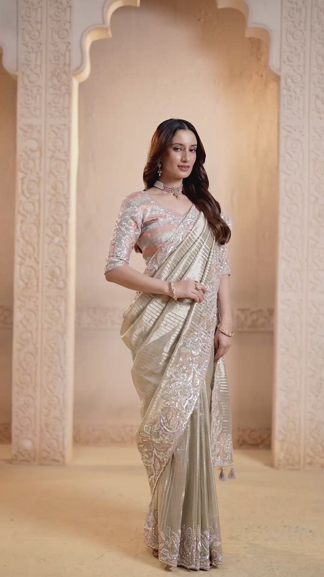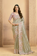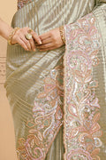 Sea-Green Handwoven Zari Tissue Embroidery Swarovski Work Designer Saree