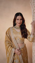 Mustard Kanjivaram Zari Silk Aari Work Embellished Designer Saree
