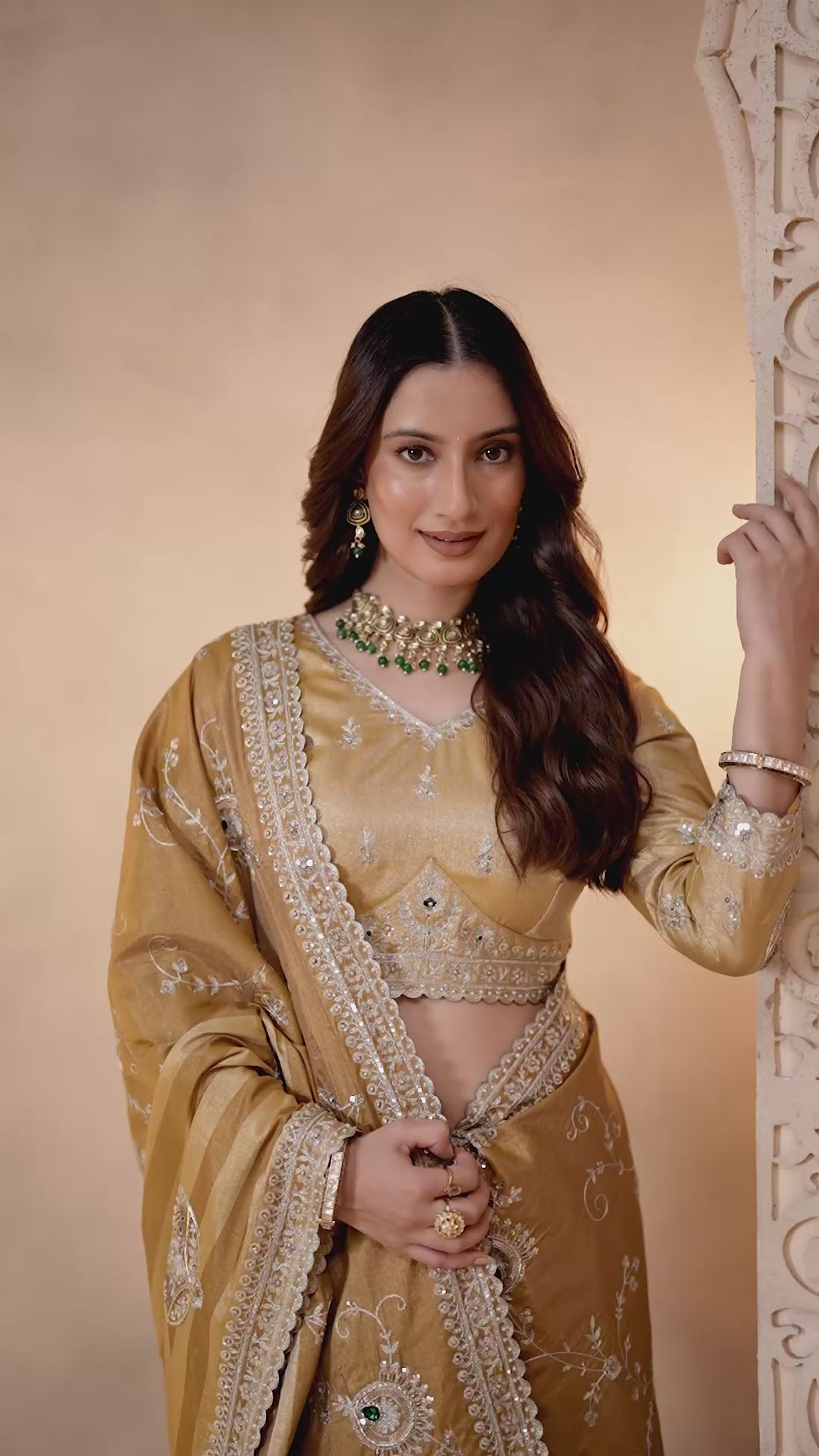 Work : Sequin, Aari Work Embellished, Emerald Stones