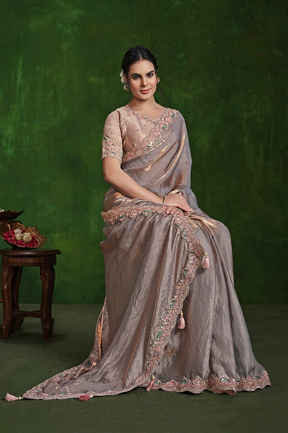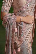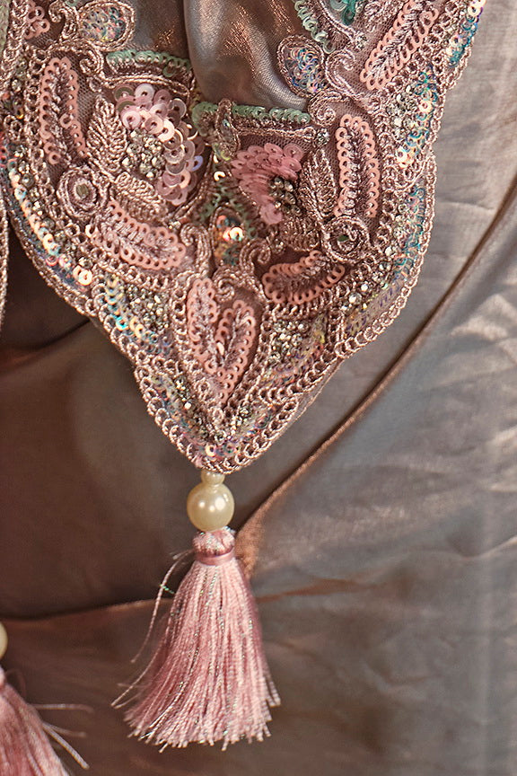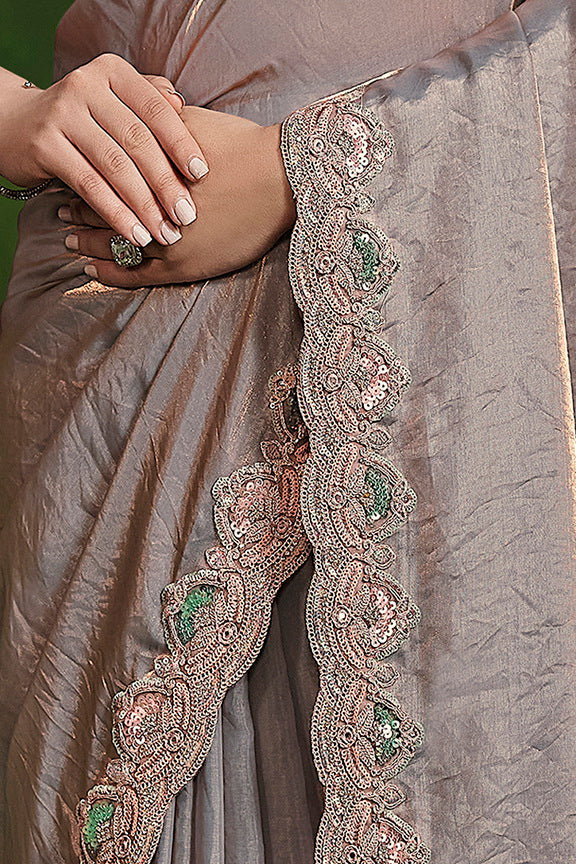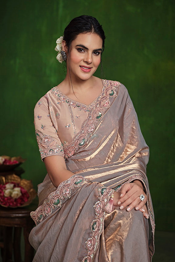 Peach 2 Tone Satin Silk Dual Sequence with Diamond work Saree with Stitched Blouse