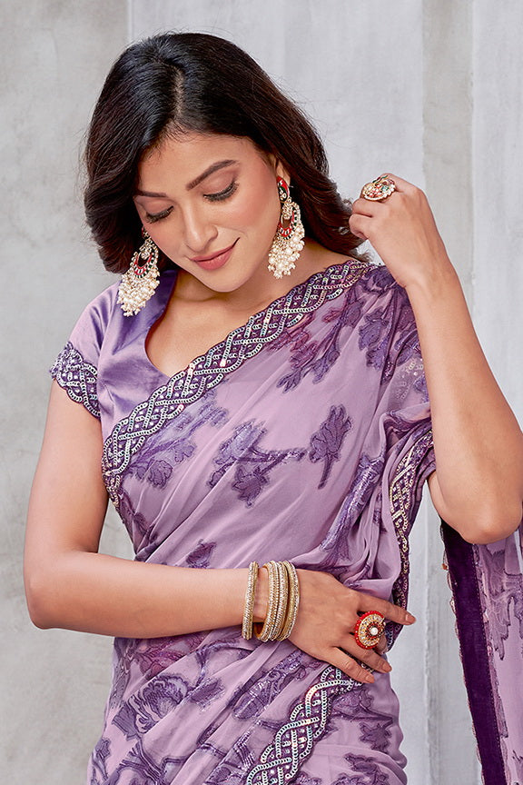 Purple Georgette Zari Jacquard Woven Saree with Unstitched Blouse