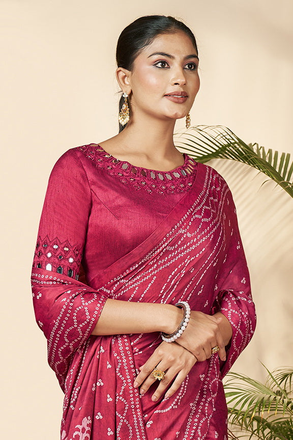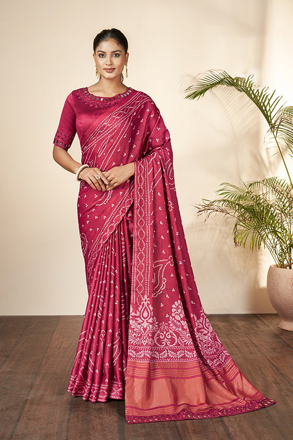 Pink Gajji Silk Bandhani Printed Saree with Unstitched Blouse