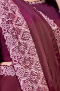 Wine Embroidery Satin Silk Ready to Wear Saree