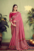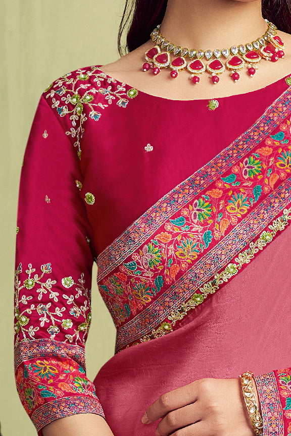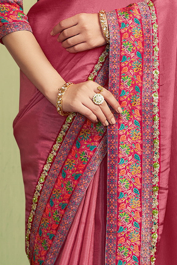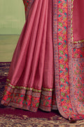 Mauve Pink Rangkat Woven Handwork Saree
