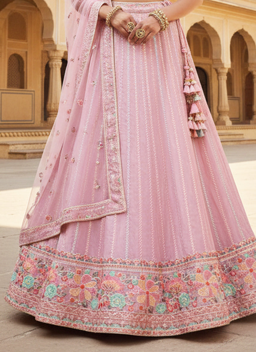 Pink Crepe Silk Thread Lehenga Choli