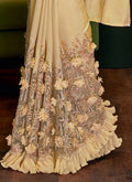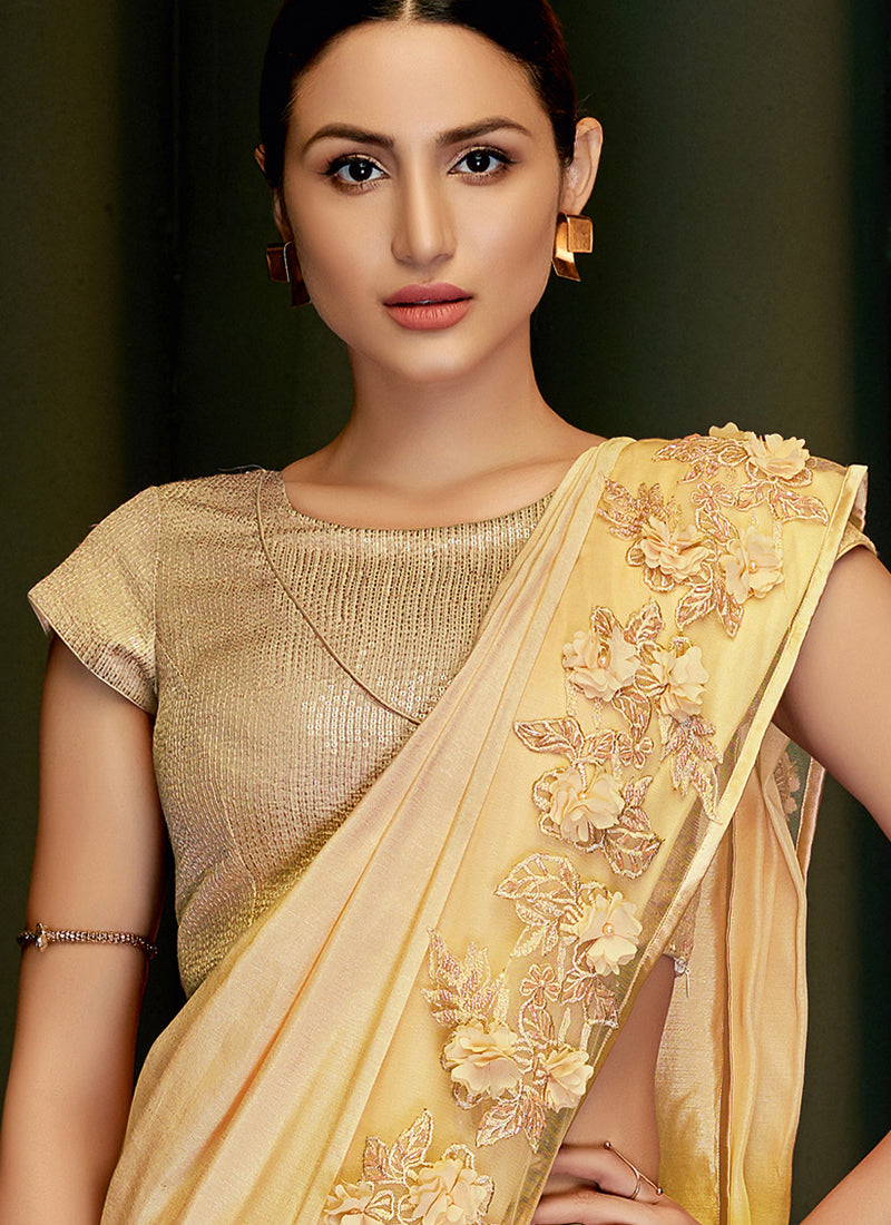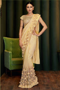 Beige Silk Georgette Embroidered Ready to wear Saree with Stitched Blouse