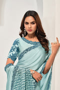 Light Blue Crepe Satin Silk Sequence Work Saree with Unstitched Blouse