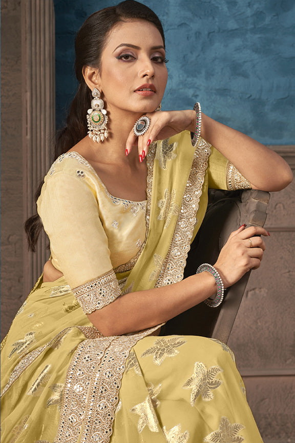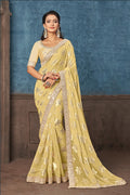 Yellow Georgette Zari Jacquard Embroidered Saree with Unstitched Blouse