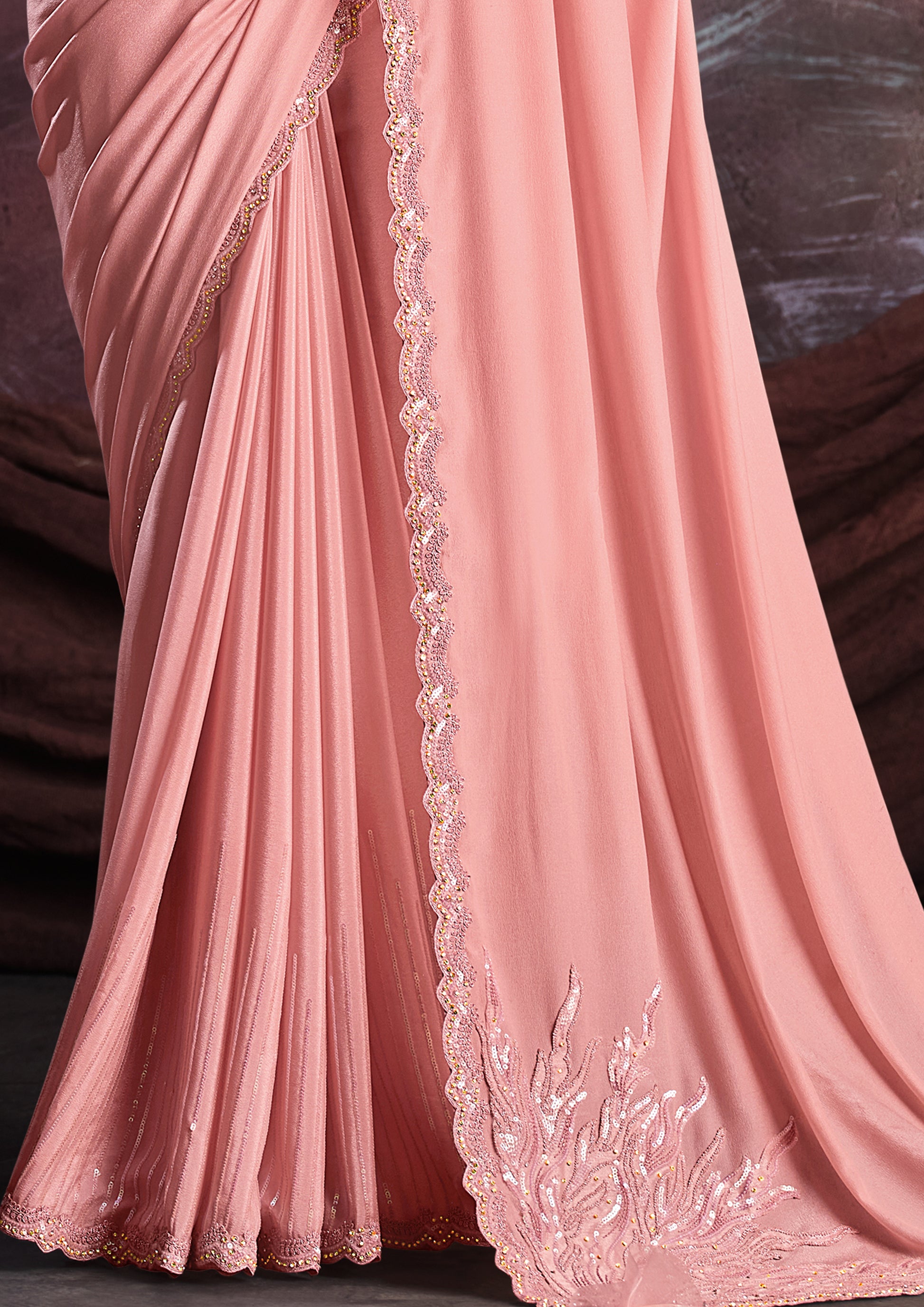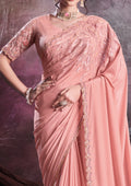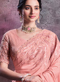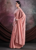 Peach Shimmer Crepe Silk Embroidered Saree